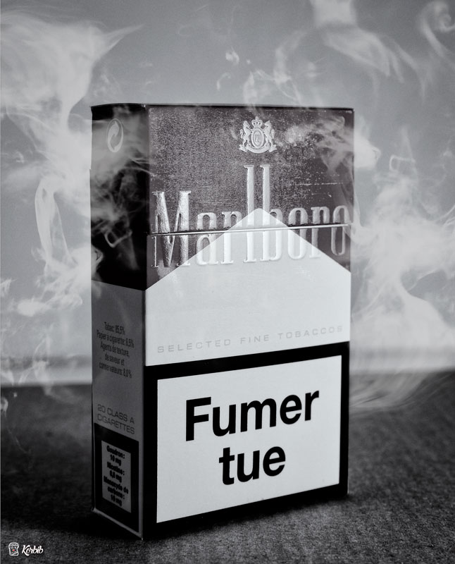 Habitué à faire des photos sans retouches, il a fait appel à moi pour que je m’occupe du post-traitement de sa dernière photo « Smoking kills ». L’idée de base était de faire une photo noir et blanc contrastée et faire ressortir les details. J’ai eu ensuite l’idée de rajouter de la fumée, ce qui rajoute plus de poids à l’image et au message qu’il veut faire passer.